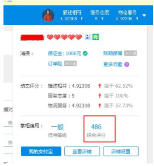我们打开卖家中心,把鼠标放在你卖家中心右上角出现的小头像上面,会出来一个下拉框,我们找到综合信用评分,点击进去。如图1: