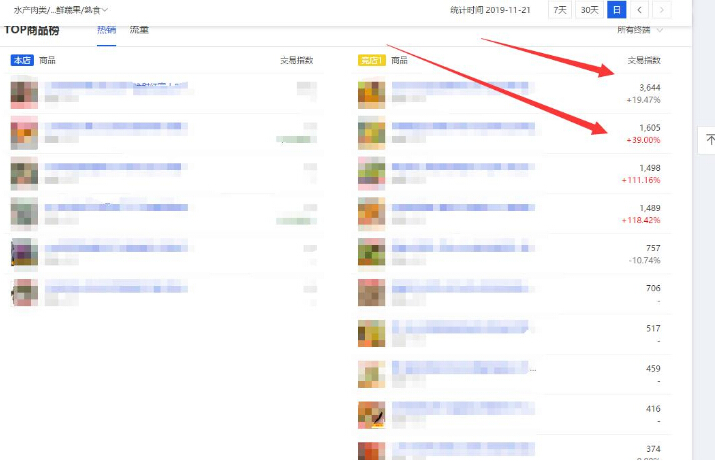 店铺产品销售数据,这个交易指数换算出来的结果。