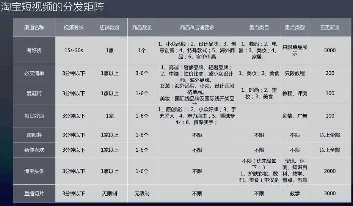 以下三点,是淘宝直播中官方给短视频的一个要求及属性划分: