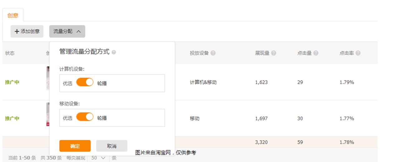 创意呢,一般都会选择不同风格的两张图片。【这样才不会因为图片原因影响我们流量的引入】流量分配方式先选择轮的同时还可以顺便把主图也测试一下,一举两的】。除了关键词推广之外,别的全部关掉【定向和人群都要关掉,我们只是测款,不能让别的数据去干扰】