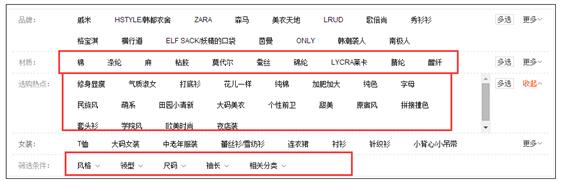 在我红框里面的那些属性值,都非常的值得你去关注,每一个单一维度的属性值其实都可以深挖成为“小而美”,而这个也是全店爆款的关键点所在。比如,你店铺中所有的T恤制作“麻”这个材质的,喜欢这种材质的消费者跟喜欢“蚕丝”材质的消费者是有很大区别的。