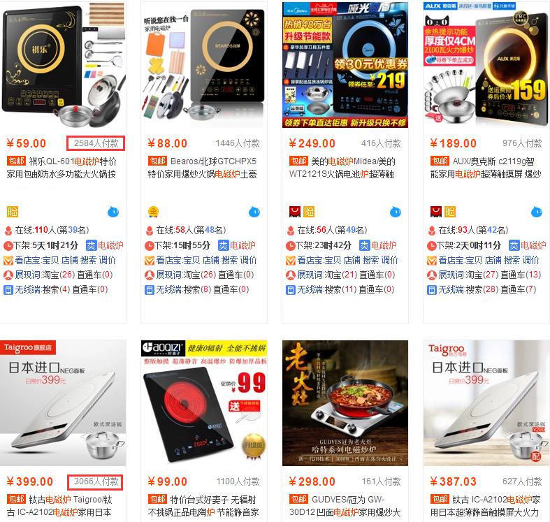 如图,我去淘宝搜索了一下电磁炉,然后看到一堆眼花缭乱的主图。那么问题就来了,这么多的店铺,买家要怎么来进行选择呢?显然,如上图所示,白底比较干净的主图销量是最好的,要么就是价格便宜的销量也是好的。然而,这个价格低的宝贝销量还是比不上这款宝贝的销量。为什么这款宝贝会这么突出呢?主要是其他的主图无论是效果上还是利益点,都并不差于这张图。但是,它们都是千篇一律,而在这里,越是干净的背景,越是有醒目突出的效果!而相反,在一堆没有什么效果简单的主图中,一张富有设计感的主图,往往就是去的效果的感觉因素。