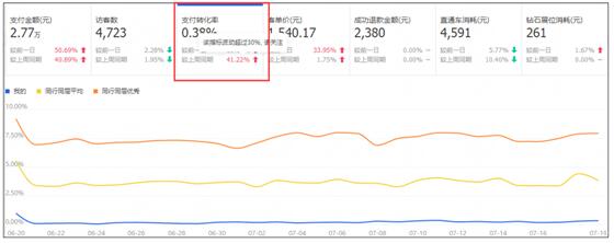 比如突然有了大量的来自于手淘首页的流量的时候,这时候你的转化率肯定是会下滑的,此时你只需要看一下跟行业均值对比,你的手淘首页流量有没有比较差,如果都OK,是可以不用处理的。