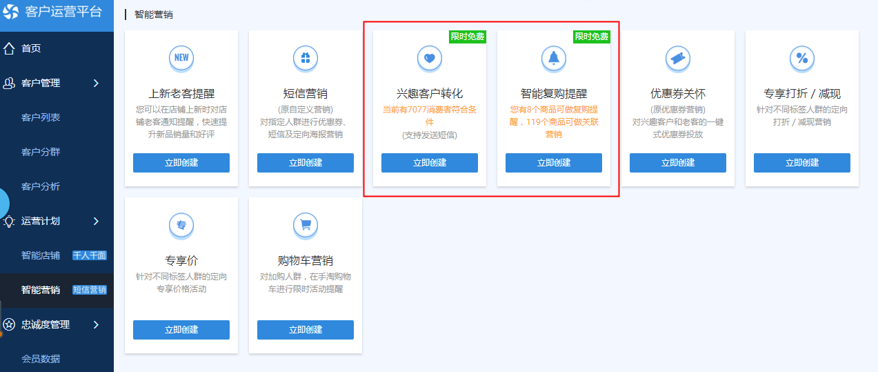 3.活动前期可以通过客户运营平台进行推送不同面值的店铺优惠券,刺激老客户回流,关注店铺。老客户的维护对于千人千面还有新品的破零以及店铺长期发展都至关重要,所以要完善会员制度。