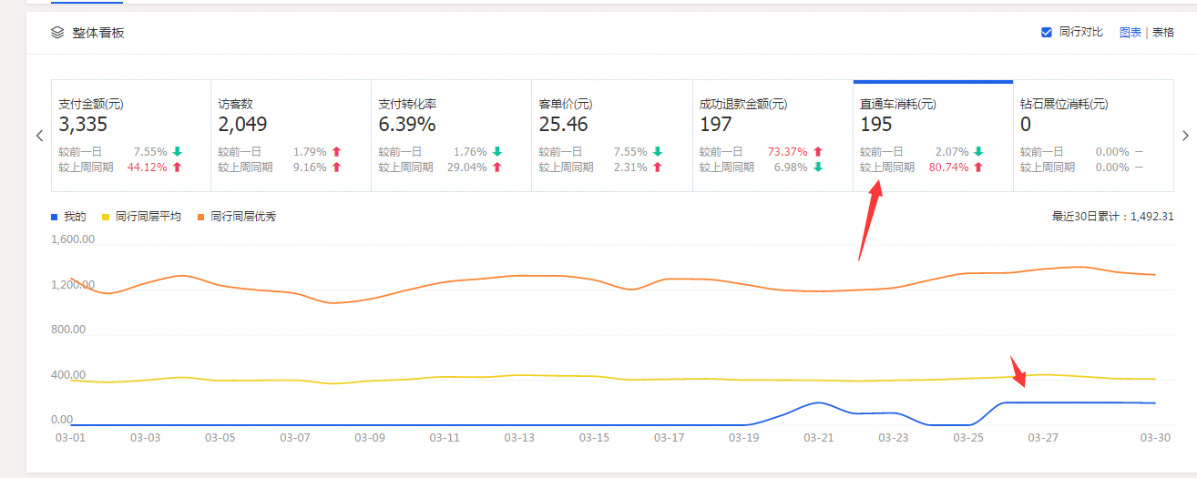 相信不少同学都和他一样,从3.13日开始一直到3.30日流量一直是恒定平行的,仿佛上方有很大压力,不让他冲破。就算在中途加了直通车,也无法提升。然后就会迷茫了,我该怎么做!