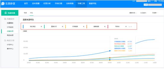 流量是基础,我们要了解,自然搜索、天猫搜索、直通车、钻展、站外活动等流量信息,这几个是店铺流量的主要来源,有PC端的和手机端的两大类。我们可以用生意参谋里的市场行情,市场行情有个商品店铺榜,上面有详细的资料。我们要从这些数据中了解到竞争对手的流量是怎么来的,是搞活动了还是做直播了,了解流量来源我们便可以针对于自己的店铺吸取竞争对手的运营经验。